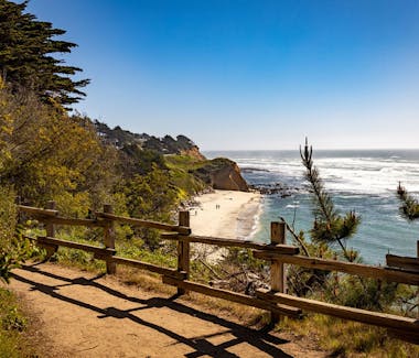 Perfect for walking, running, or biking, the paved trail offers sweeping views of the Pacific Ocean, sandy beaches, wildflower-covered bluffs, and migrating whales offshore in season. Benches and access points along the way make it easy to stop, rest, and enjoy the coastal beauty.