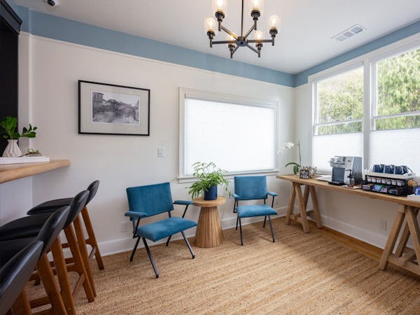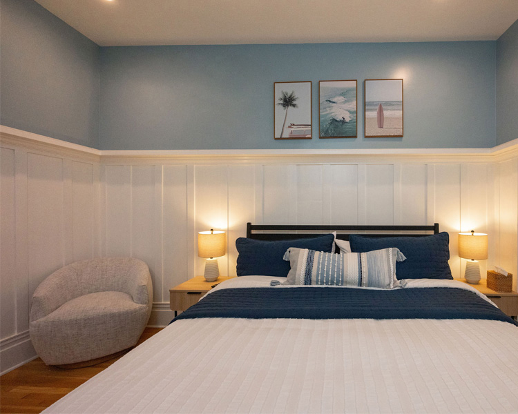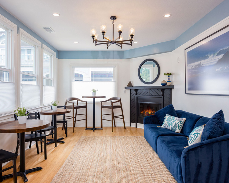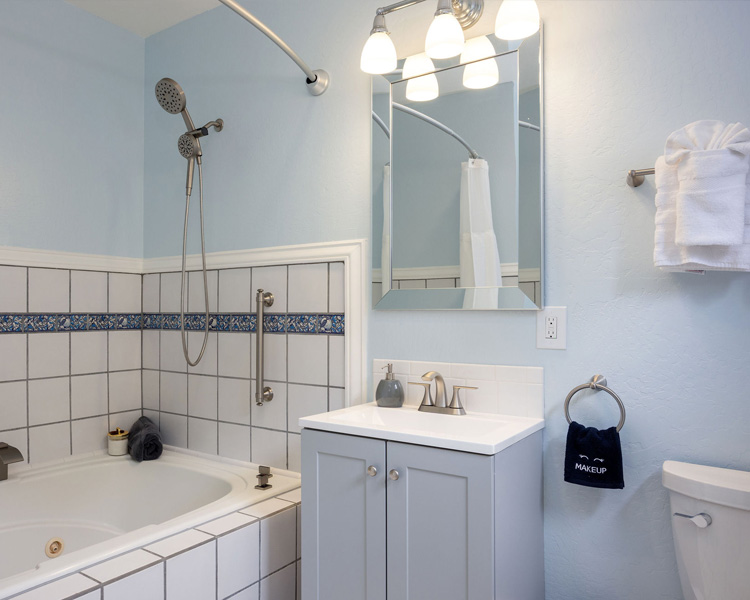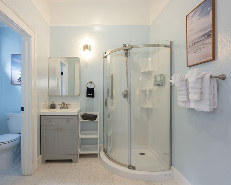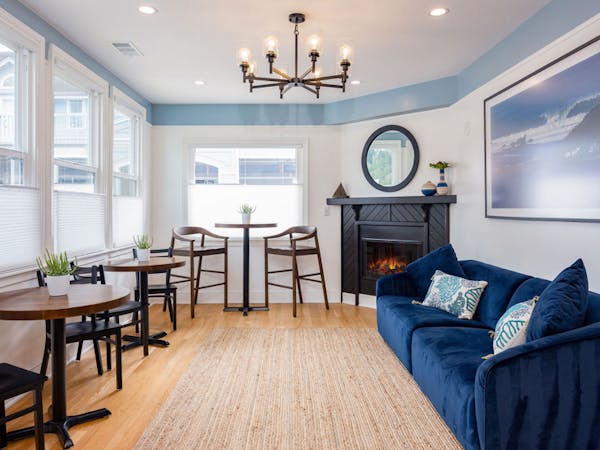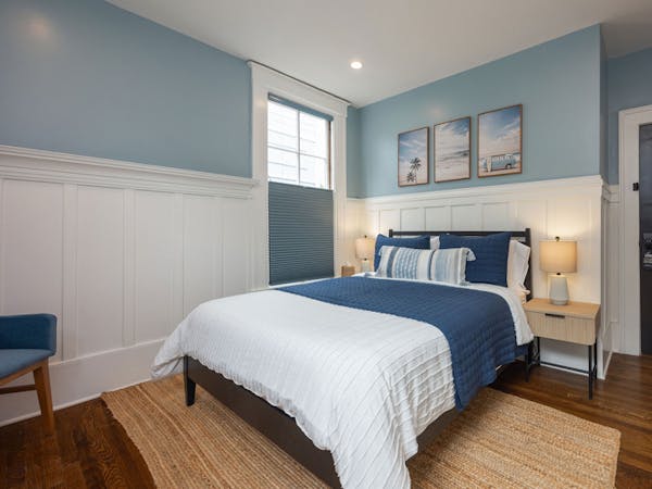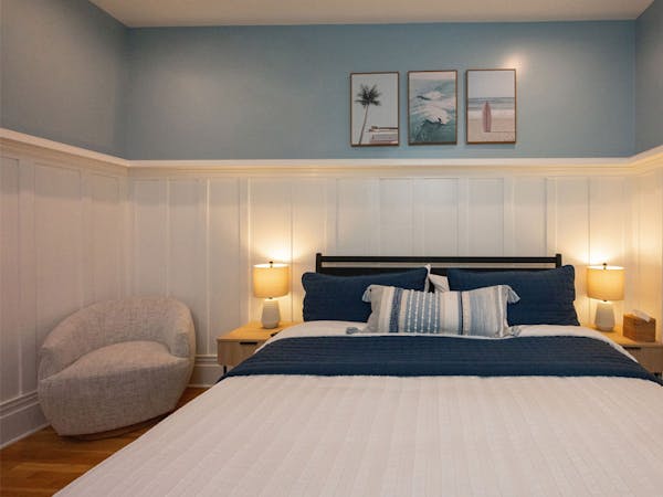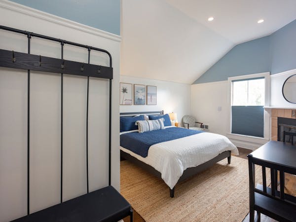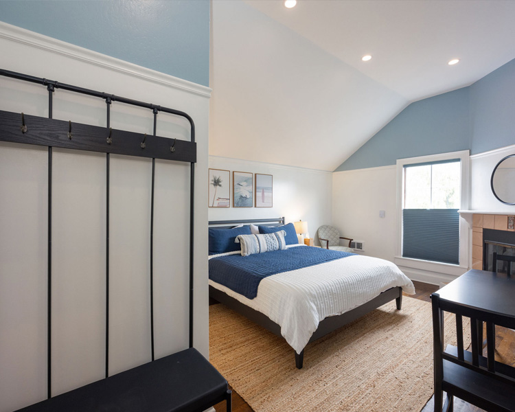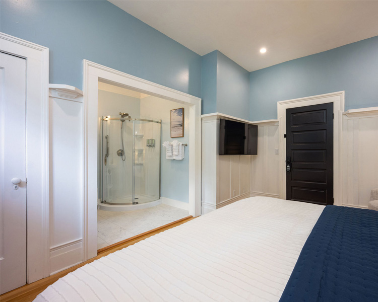Gracefully appointed with coastal charm, this second-floor retreat features a plush king bed framed by soft, dimmable lighting and individually controlled heating for personalized comfort. A private in-room bathroom with a tub-and-shower combination adds ease and convenience, while a gas fireplace elevates the experience with a soft, ambient glow. Thoughtful modern amenities—high-speed, reliable Wi-Fi and complimentary streaming TV—for a cozy stay with soft touches throughout.
