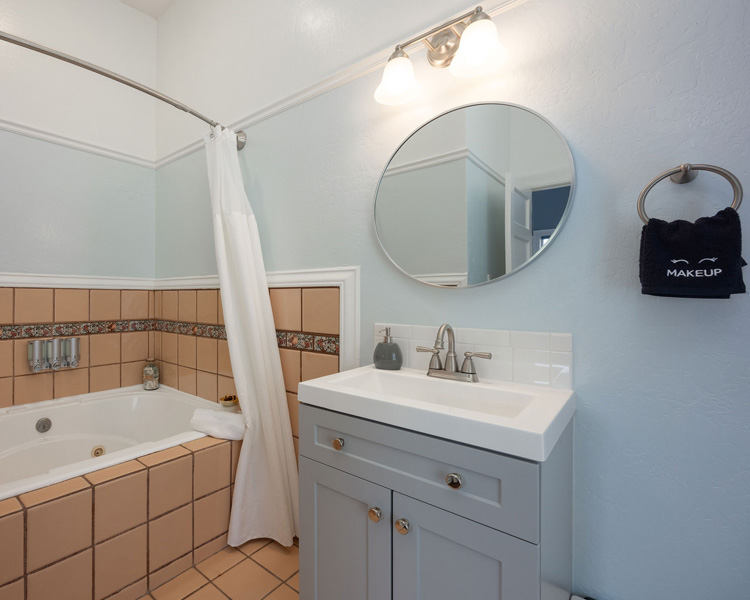 Inviting second-floor retreat invites you to unwind in a plush king bed, surrounded by soft, dimmable lighting and individually controlled heating for personalized comfort. From your window, take in the vibrant charm of Main Street Half Moon Bay, where the glow of lights and lively downtown scene create a captivating backdrop. The private bath enhances the experience with a rejuvenating Jacuzzi tub and spacious shower, while modern amenities—including high-speed, reliable WiFi and complimentary streaming TV—ensure a seamless blend of indulgence and ease.